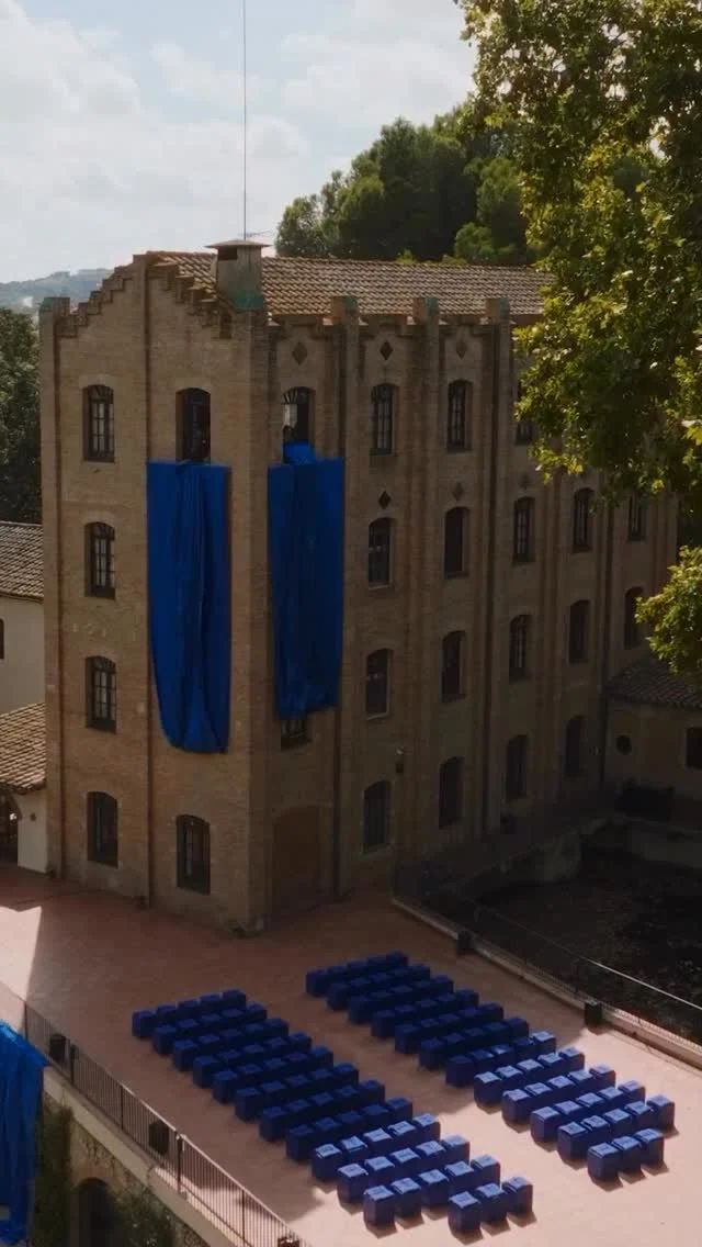 Wild Red: Sesión editorial con vestidos bohemios y detalles con pampas en una masía tradicional de Cataluña, España.